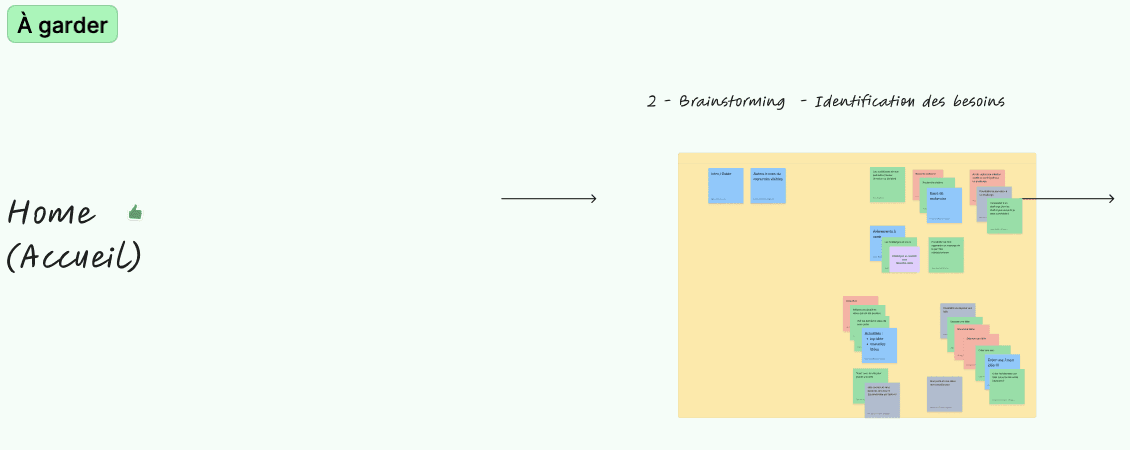Ces visuels illustrent la démarche de design thinking : ateliers de co-création, wireframes préliminaires et cartographie des parcours à travers les départements. Ils reflètent notre effort pour simplifier et unifier l'expérience utilisateur.